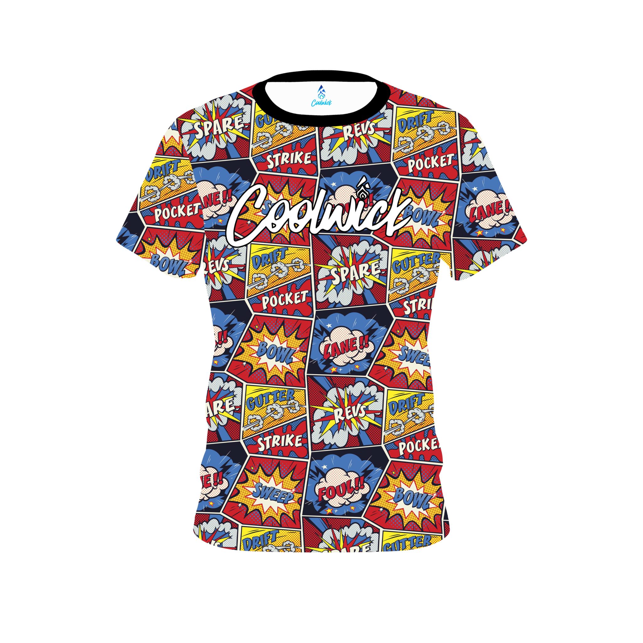 Stay 40% cooler with CoolWick. Our Signature Coolwick Comic Bowling Jerseys are made of two different fabrics with the back being our CoolWick technology fabric that helps wick moisture away and helps air flow more easily through the fibers.