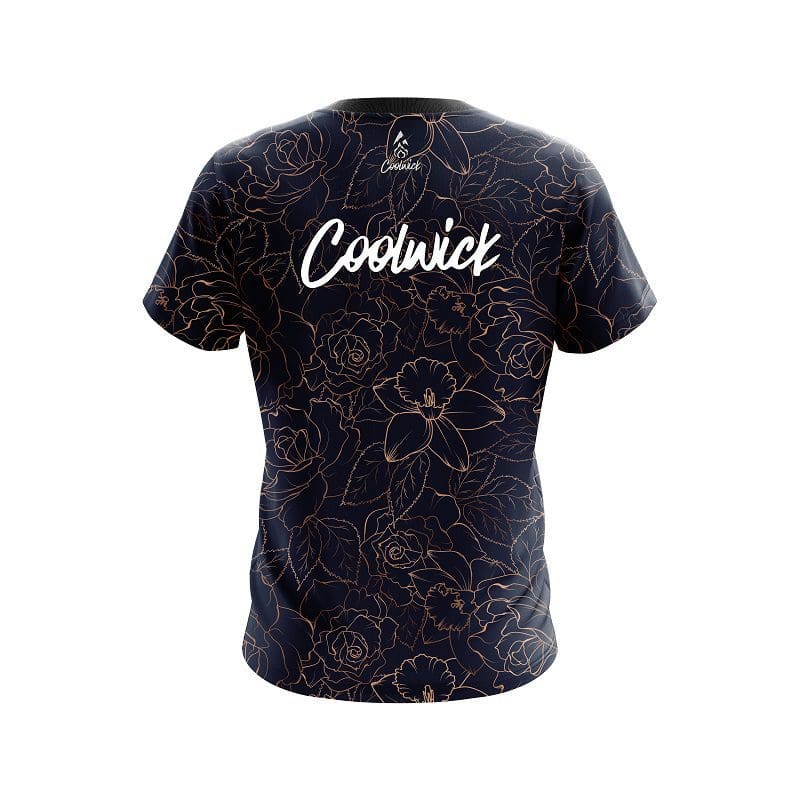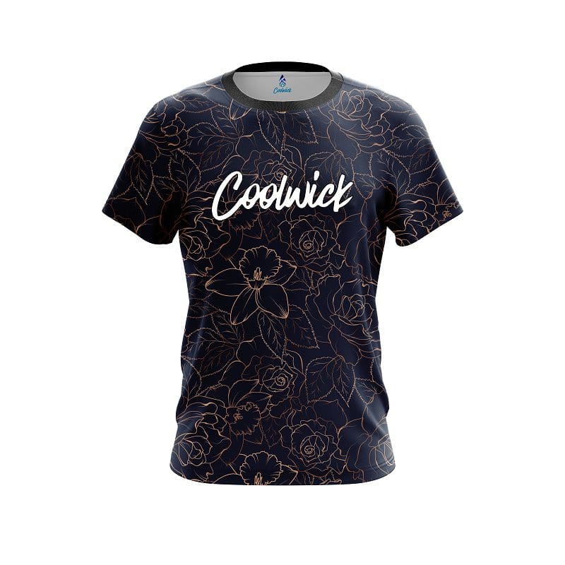 Stay 40% cooler with CoolWick. Our Signature Coolwick logo Navy rose gold Bowling Jerseys are made of two different fabrics with the back being our CoolWick technology fabric that helps wick moisture away and helps air flow more easily through the fibers.