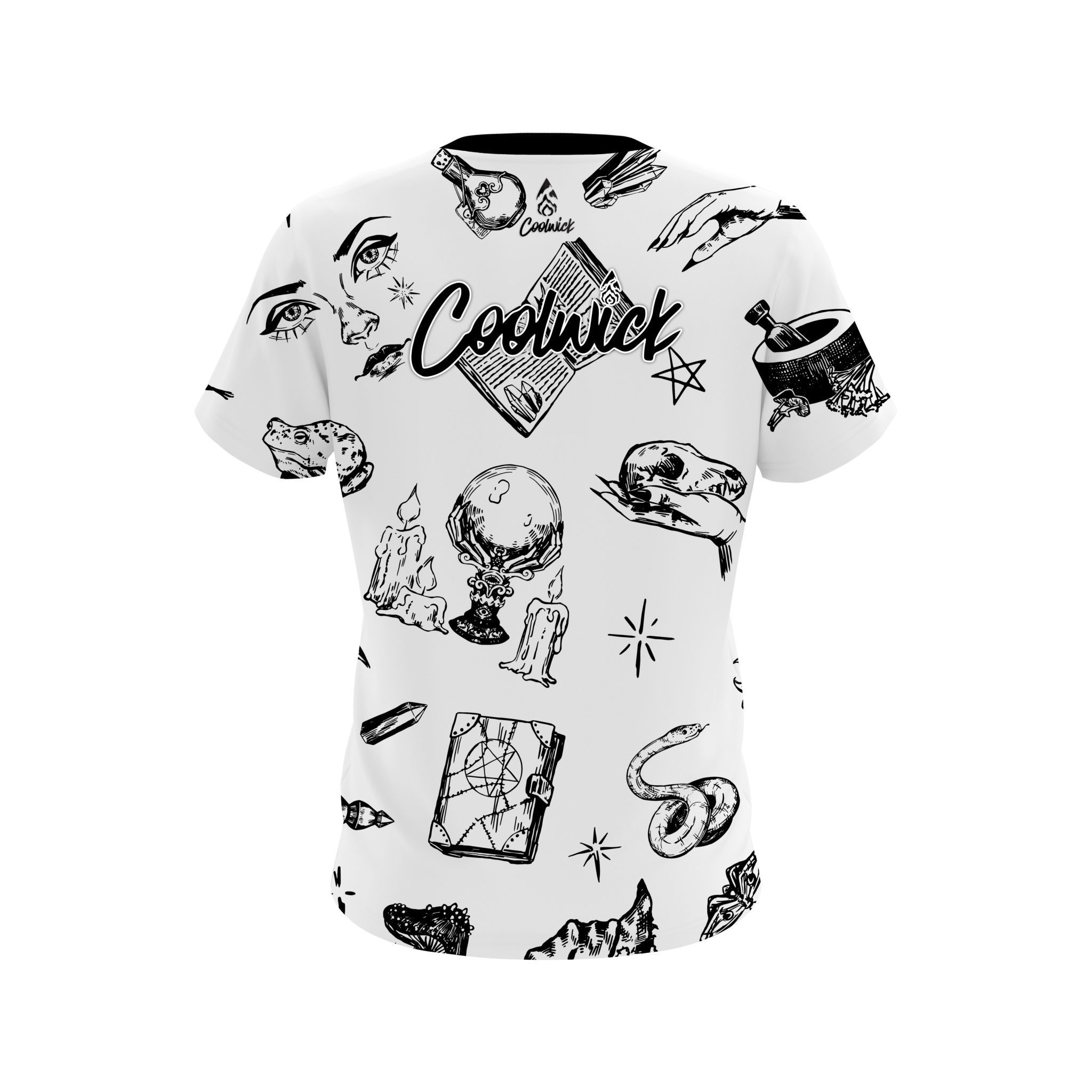 Stay 40% cooler with CoolWick. Our Signature Coolwick White Witches Bowling Jerseys are made of two different fabrics with the back being our CoolWick technology fabric that helps wick moisture away and helps air flow more easily through the fibers.