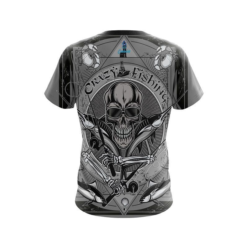 Stay 40% cooler with CoolWick. Our Skull Crazy Fish CoolWick Fishing Jerseys are made of two different fabrics with the back being our CoolWick technology fabric that helps wick moisture away and helps air flow more easily through the fibers. They also are UPF 50 and made of 100% Polyester.
