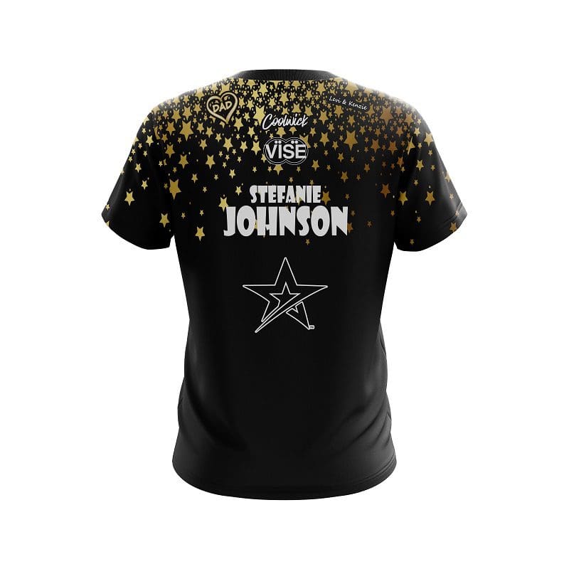 Stay 40% cooler with CoolWick. Our Stefanie Johnson Roto Grip Golden Knight Stars CoolWick Bowling Jerseys are made of two different fabrics with the back being our CoolWick technology fabric that helps wick moisture away and helps air flow more easily through the fibers.