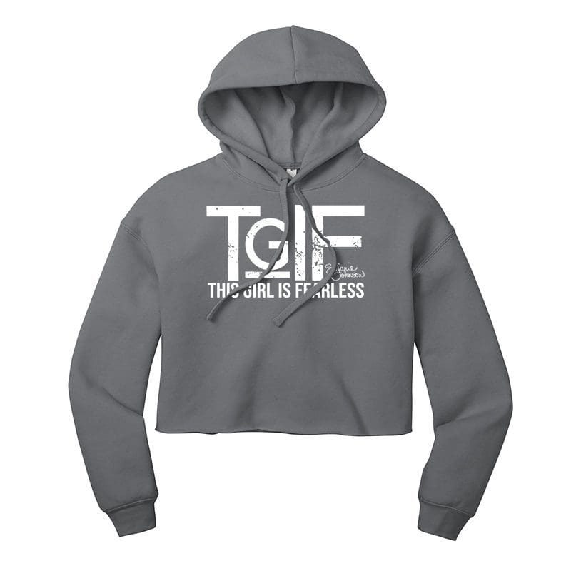Stefanie Johnson TGIF This Girl Is Fearless Gray Womens Cropped Bowling Hoodie