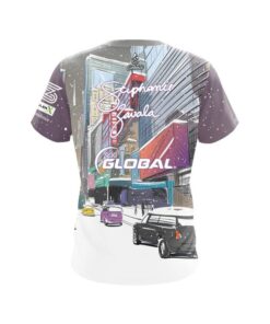 Designed, cut and sewn by hand stay 40% cooler with CoolWick. Our Stephanie Zavala Christmas in New York CoolWick Bowling Jerseys are made of two different fabrics. The back being our CoolWick technology fabric that helps wick moisture away and helps air flow more easily through the fibers.