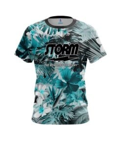Stay 40% cooler with CoolWick. Our Storm Aqua Tropical Leafs Effect CoolWick Bowling Jerseys are made of two different fabrics with the back being our CoolWick technology fabric that helps wick moisture away and helps air flow more easily through the fibers.