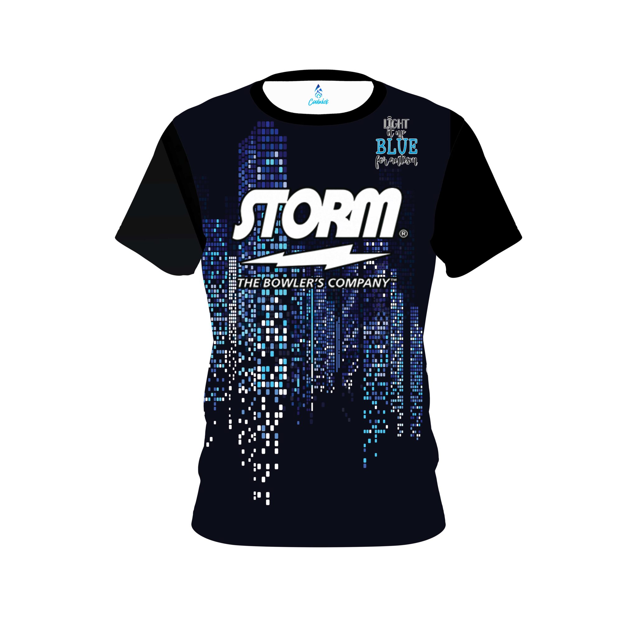 Stay 40% cooler with CoolWick. Our Storm Autism Light It Up Blue Pixels CoolWick Bowling Jerseys are made of two different fabrics with the back being our CoolWick technology fabric that helps wick moisture away and helps air flow more easily through the fibers.