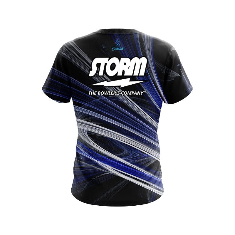 Stay 40% cooler with CoolWick. Our Storm Blue Motion Swirl CoolWick Bowling Jerseys are made of two different fabrics with the back being our CoolWick technology fabric that helps wick moisture away and helps air flow more easily through the fibers.