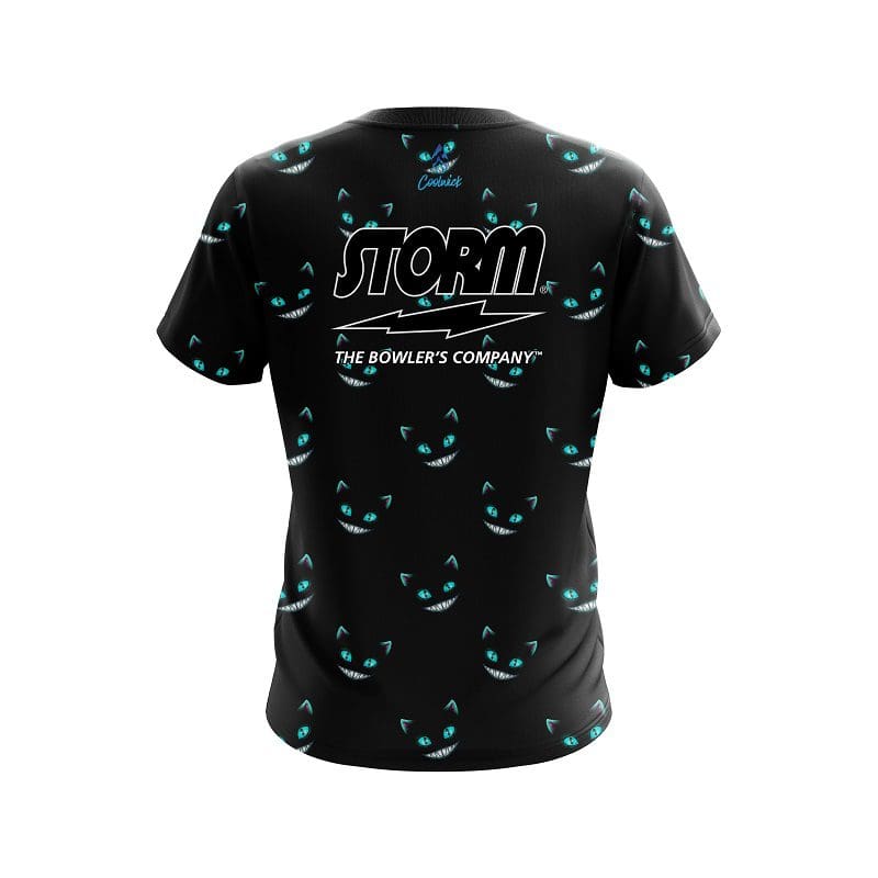 Stay 40% cooler with CoolWick. Our Storm Cheshire Midnight Cat CoolWick Bowling Jerseys are made of two different fabrics with the back being our CoolWick technology fabric that helps wick moisture away and helps air flow more easily through the fibers.