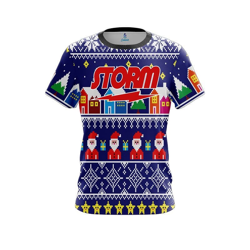 Stay 40% cooler with CoolWick. Our Storm Dirty Santa Blue CoolWick Bowling Jerseys are made of two different fabrics with the back being our CoolWick technology fabric that helps wick moisture away and helps air flow more easily through the fibers.