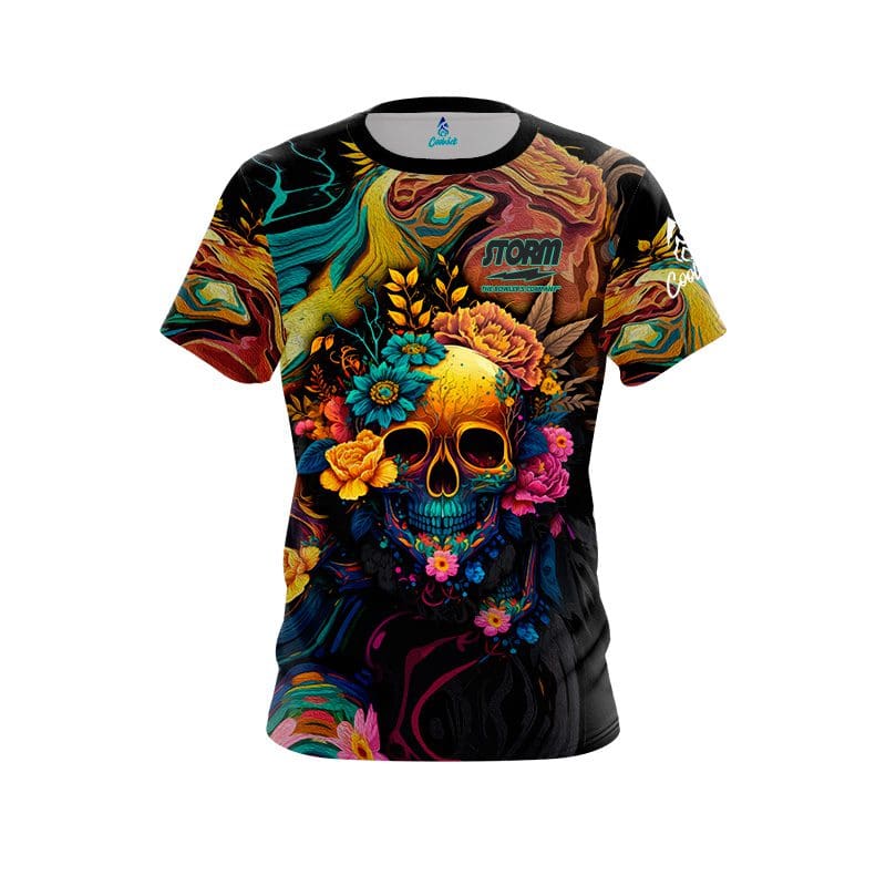 Get ready to rock a skull-crushing jersey like no other! Introducing the all-new Storm Floral Skullscape CoolWick Bowling Jersey, designed to take your style game to the next level.
