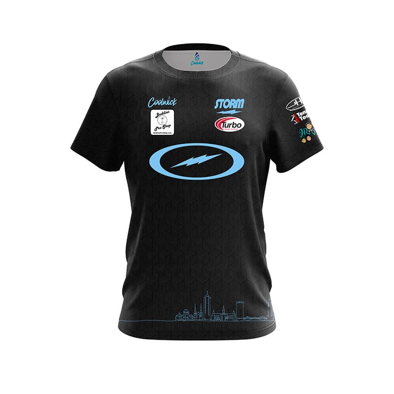 Bowl like the pros with our signature replica jerseys! Introducing the Storm Francois Lavoie Black Blue Skyline CoolWick Bowling Jersey – designed with innovative fabrics for superior performance. Our dye-sublimated replica bowling jersey features the cutting-edge CoolWick technology fabric. You will be staying 40% cooler as it efficiently wicks away moisture and improves airflow.