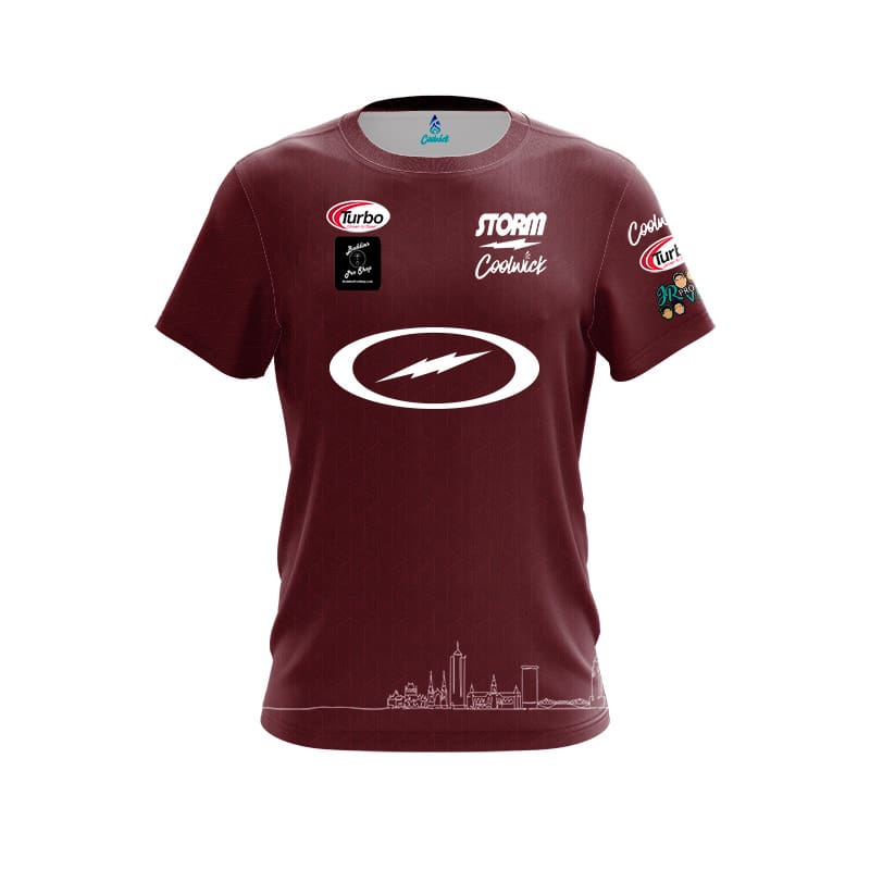 Bowl like the pros with our signature replica jerseys! Introducing the Storm Francois Lavoie Burgundy Skyline CoolWick Bowling Jersey – designed with innovative fabrics for superior performance. Our dye-sublimated replica bowling jersey features the cutting-edge CoolWick technology fabric. You will be staying 40% cooler as it efficiently wicks away moisture and improves airflow.