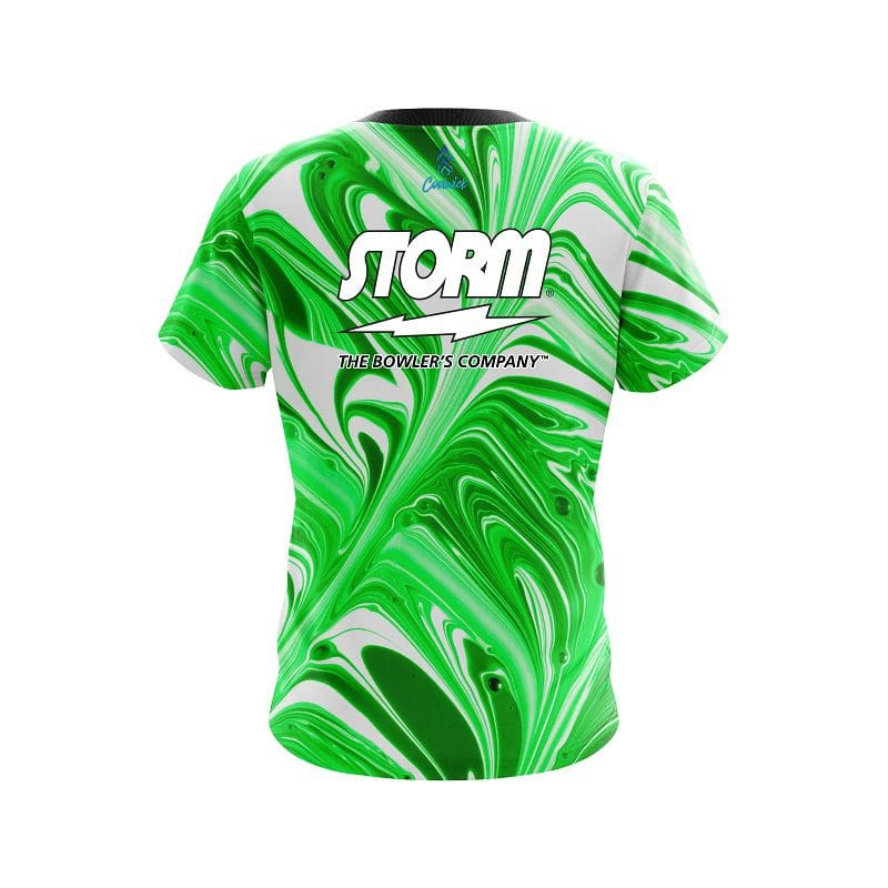 Stay 40% cooler with CoolWick. Our Storm Green And White Liquid Swirls CoolWick Bowling Jerseys are made of two different fabrics with the back being our CoolWick technology fabric that helps wick moisture away and helps air flow more easily through the fibers.