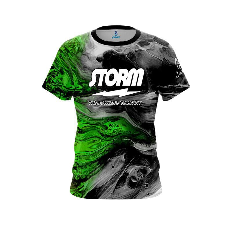 Stay 40% cooler with CoolWick. Our Storm Green Lava CoolWick Bowling Jerseys are made of two different fabrics with the back being our CoolWick technology fabric that helps wick moisture away and helps air flow more easily through the fibers.