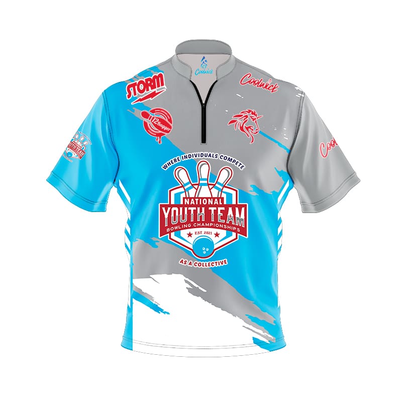 CoolWick and NYTBC present the Storm Grey White Blue NYTBC Gratitude CoolWick Bowling Jersey!