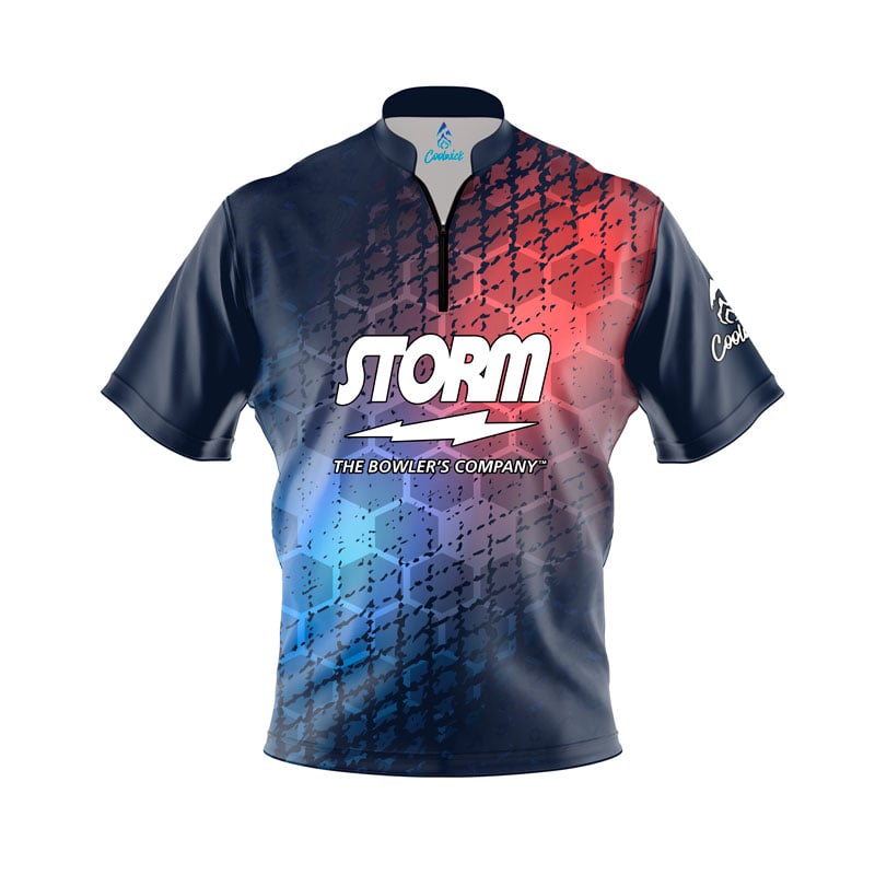Stay 40% cooler with CoolWick. Our Storm Grunge Sport Hex Quick Ship CoolWick Sash Zip Bowling Jerseys are made of CoolWick technology fabric that helps wick moisture away and helps air flow more easily through the fibers.