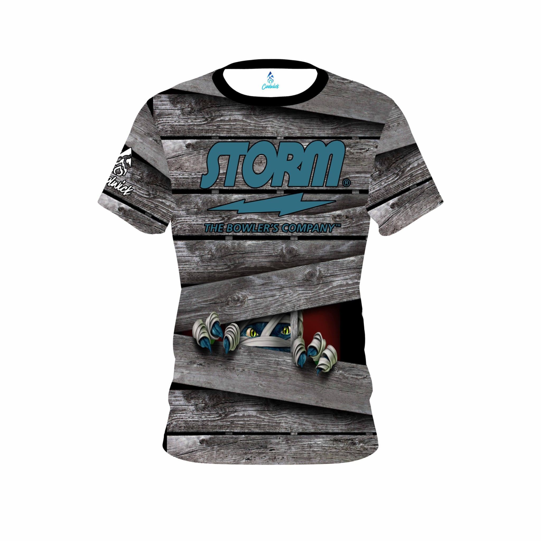 Stay 40% cooler with CoolWick. Our Storm Halloween Peek A Boo Monster Coolwick Bowling Jerseys are made of two different fabrics with the back being our CoolWick technology fabric that helps wick moisture away and helps air flow more easily through the fibers.