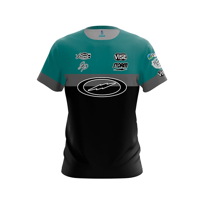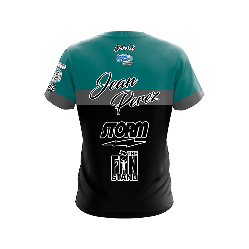 Gear up for a remarkable experience of performance, comfort, and style all rolled into one! Introducing the breathtaking Storm Jean Perez Black Grey Teal Stripes CoolWick Bowling Jersey – meticulously crafted with the latest custom design by CoolWick Staffer, Jean Perez!