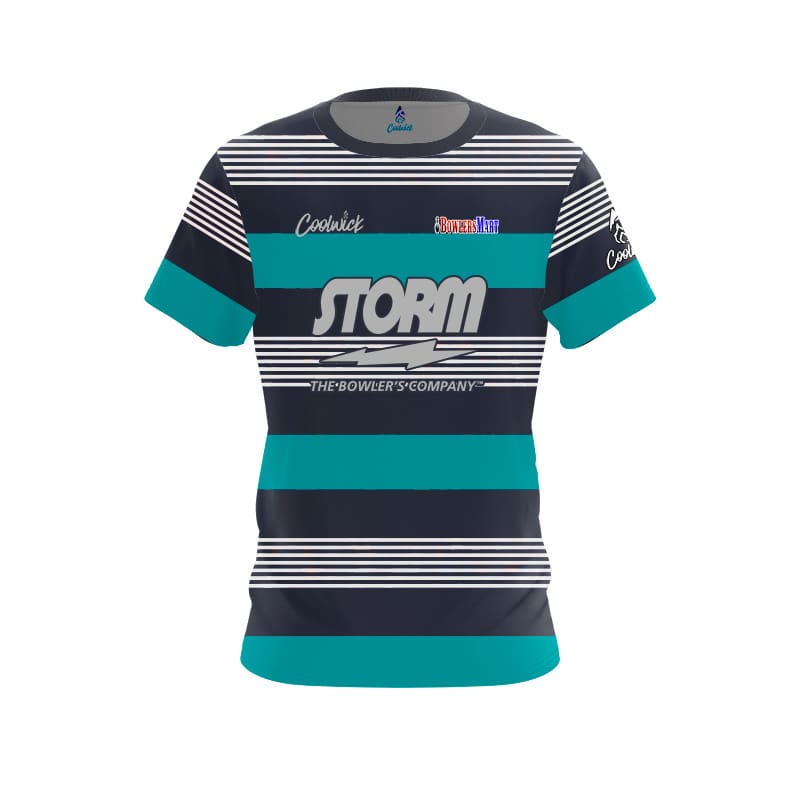 Are you ready to exceed the benchmark of style and performance? Elevate your game with the Storm Kelly Gaines Aqua Navy Stripes CoolWick Bowling Jersey. Don’t miss out on this extraordinary opportunity – get yours today and experience the epitome of bowling excellence!