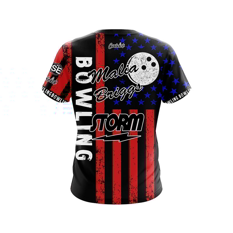 Gear up for a remarkable experience of performance, comfort, and style all rolled into one! Introducing the breathtaking Storm Malia Briggs American Flag CoolWick Bowling Jersey – meticulously crafted with the latest custom design by CoolWick Staffer, Malia Briggs!