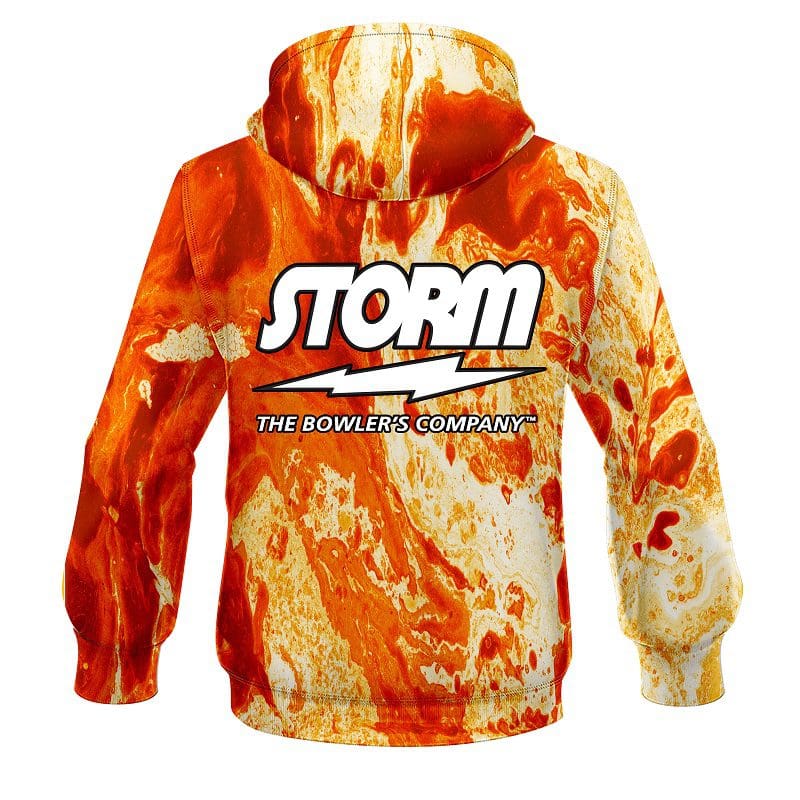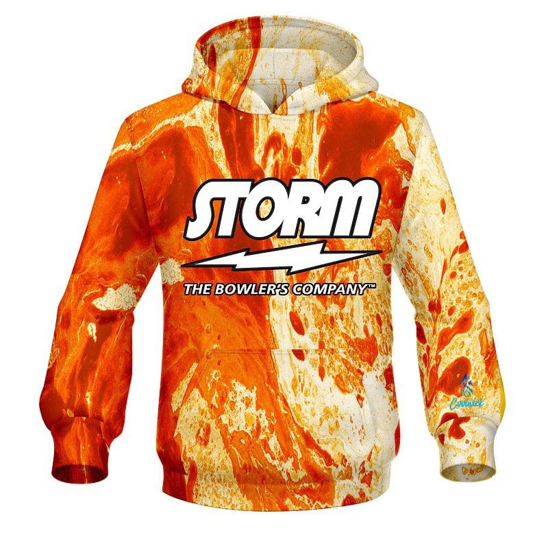 Designed, cut and sewn by hand, our Storm Marble Orange CoolWick Bowling Hoodies are made to keep you warm and comfy with HD graphics and eye-catching style.