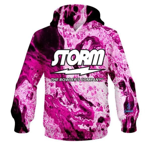Designed, cut and sewn by hand, our Storm Marble Pink CoolWick Bowling Hoodies are made to keep you warm and comfy with HD graphics and eye-catching style.
