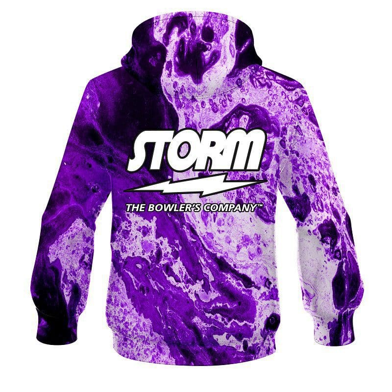 Designed, cut and sewn by hand, our Storm Marble Purple CoolWick Bowling Hoodies are made to keep you warm and comfy with HD graphics and eye-catching style.