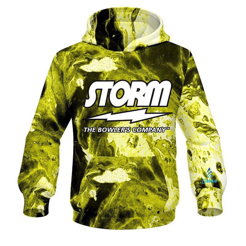 Designed, cut and sewn by hand, our Storm Marble Yellow CoolWick Bowling Hoodies are made to keep you warm and comfy with HD graphics and eye-catching style.