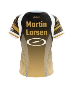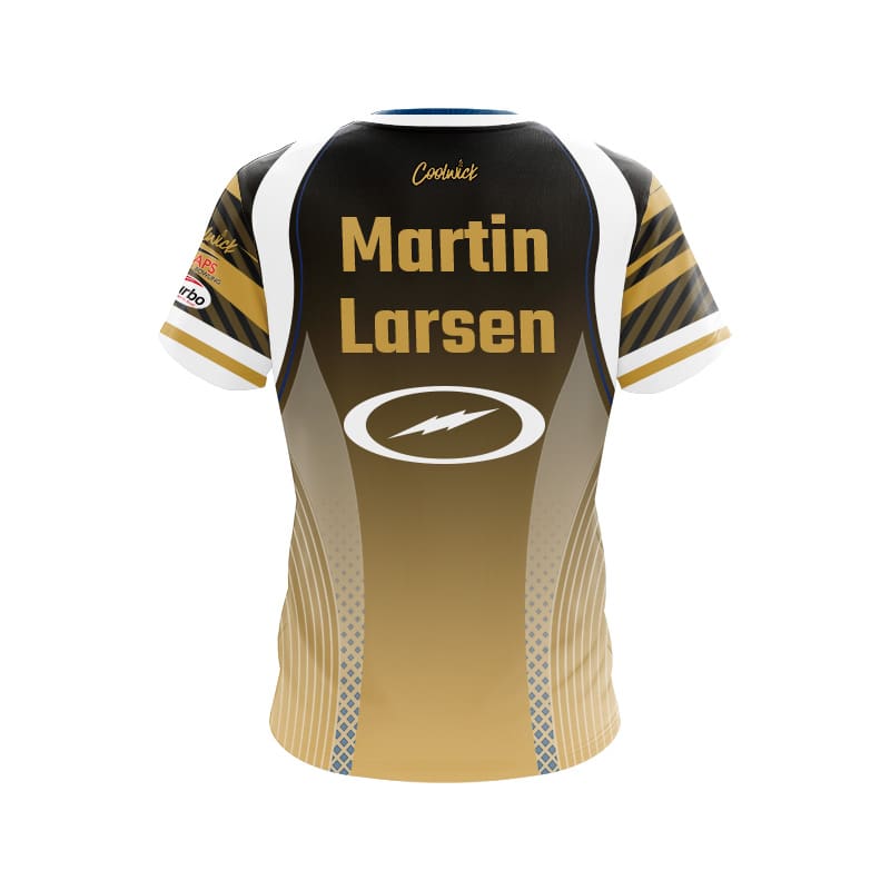 Shop now and elevate your game with the Storm Martin Larsen Gold Blue CoolWick Bowling Jersey – exceeding the benchmark of performance and style.