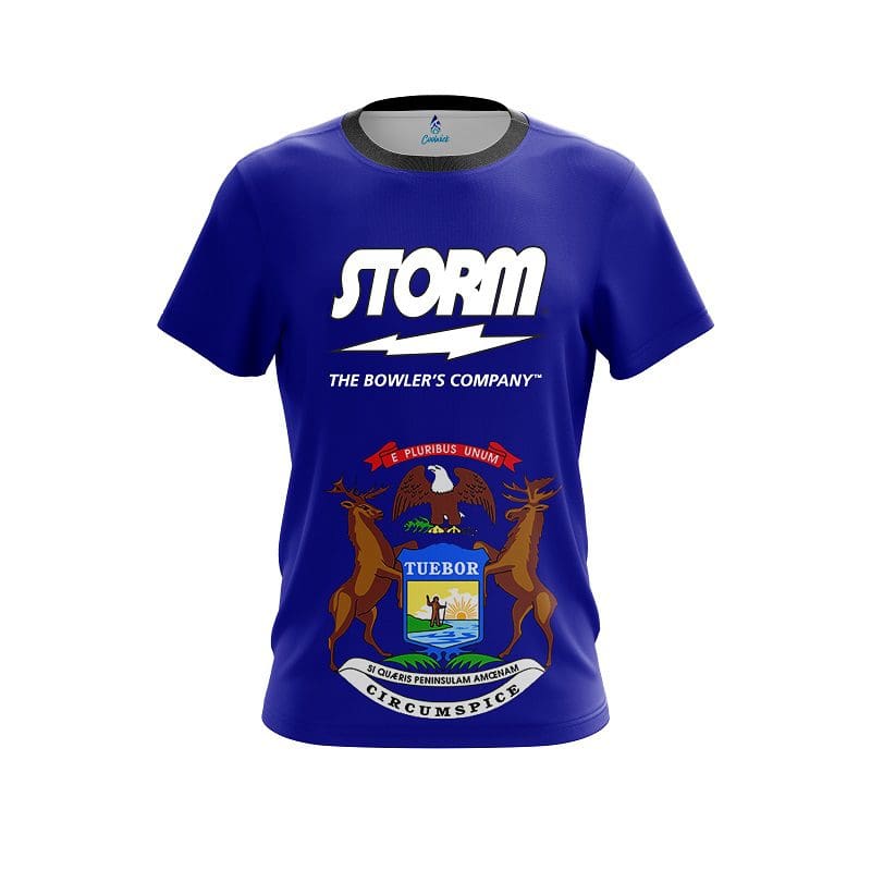 Stay 40% cooler with CoolWick. Our Storm Michigan Flag CoolWick Bowling Jersey are made of two different fabrics with the back being our CoolWick technology fabric that helps wick moisture away and helps air flow more easily through the fibers.