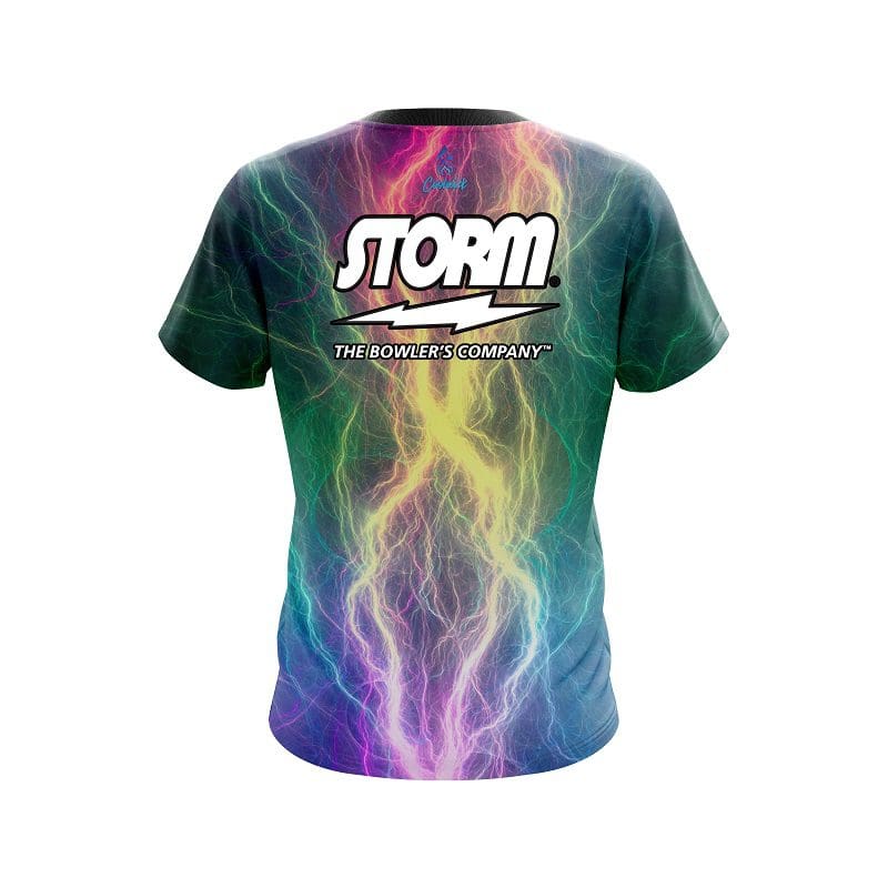 Stay 40% cooler with CoolWick. Our Storm Multi Color Electric CoolWick Bowling Jerseys are made of two different fabrics with the back being our CoolWick technology fabric that helps wick moisture away and helps air flow more easily through the fibers.