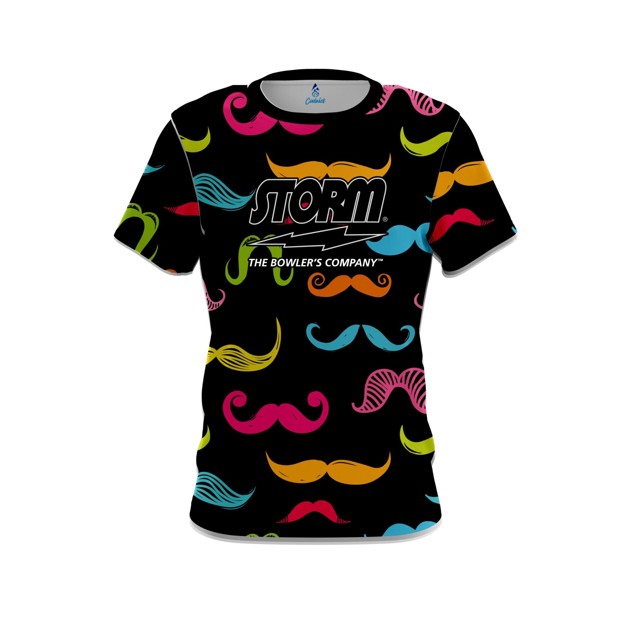 Stay 40% cooler with CoolWick. Our Storm Multi-Colored Mustache CoolWick Bowling Jerseys are made of two different fabrics with the back being our CoolWick technology fabric that helps wick moisture away and helps air flow more easily through the fibers.