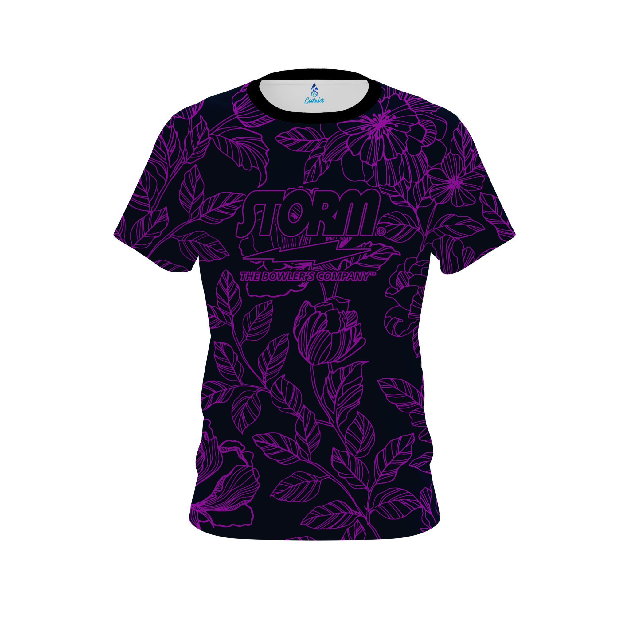 Stay 40% cooler with CoolWick. Our Storm Navy and Violet Flower Tattoo CoolWick Bowling Jerseys are made of two different fabrics with the back being our CoolWick technology fabric that helps wick moisture away and helps air flow more easily through the fibers.