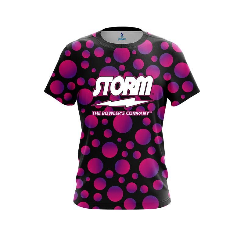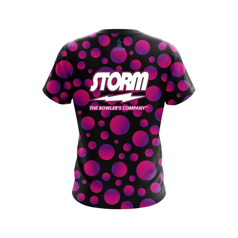 Stay 40% cooler with CoolWick. Our Storm Neon Bubbles CoolWick Bowling Jerseys are made of two different fabrics with the back being our CoolWick technology fabric that helps wick moisture away and helps air flow more easily through the fibers.