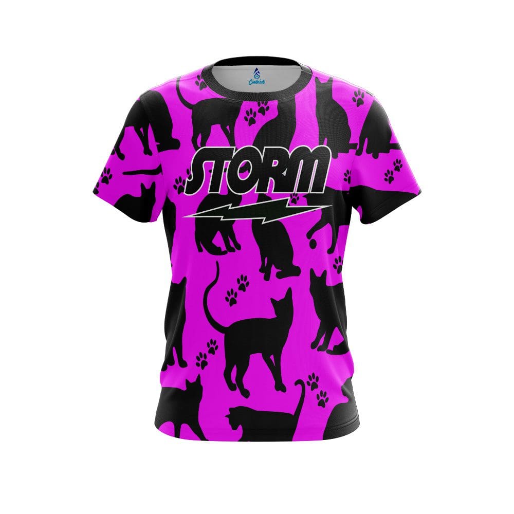 Stay 40% cooler with CoolWick. Our Storm Pink Black Cat CoolWick Bowling Jerseys are made of two different fabrics with the back being our CoolWick technology fabric that helps wick moisture away and helps air flow more easily through the fibers.