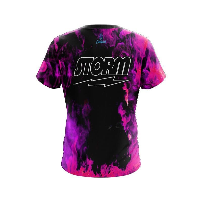 Stay 40% cooler with CoolWick. Our Storm Pink Flame CoolWick Bowling Jerseys are made of two different fabrics with the back being our CoolWick technology fabric that helps wick moisture away and helps air flow more easily through the fibers.