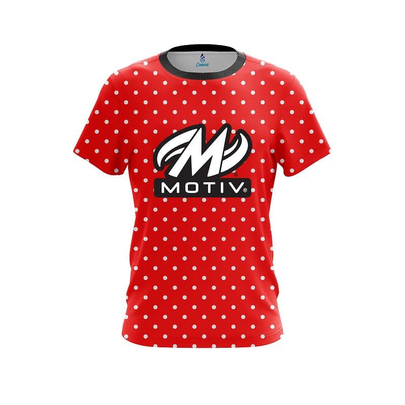 Stay 40% cooler with CoolWick. Our Motiv Red And White Dots CoolWick Bowling Jerseys are made of two different fabrics with the back being our CoolWick technology fabric that helps wick moisture away and helps air flow more easily through the fibers.
