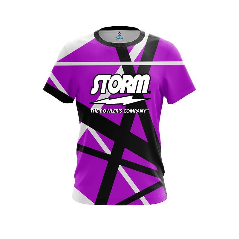 Stay 40% cooler with CoolWick. Our Storm Rocker Purple CoolWick Bowling Jerseys are made of two different fabrics with the back being our CoolWick technology fabric that helps wick moisture away and helps air flow more easily through the fibers.