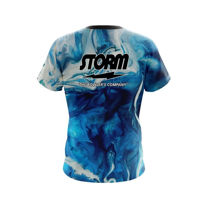 Stay 40% cooler with CoolWick. Our Storm Sea Splash CoolWick Bowling Jerseys are made of two different fabrics with the back being our CoolWick technology fabric that helps wick moisture away and helps air flow more easily through the fibers.
