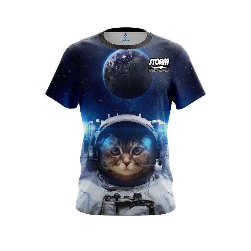 Stay 40% cooler with CoolWick. Our Storm Space Cat CoolWick Bowling Jerseys are made of two different fabrics with the back being our CoolWick technology fabric that helps wick moisture away and helps air flow more easily through the fibers.