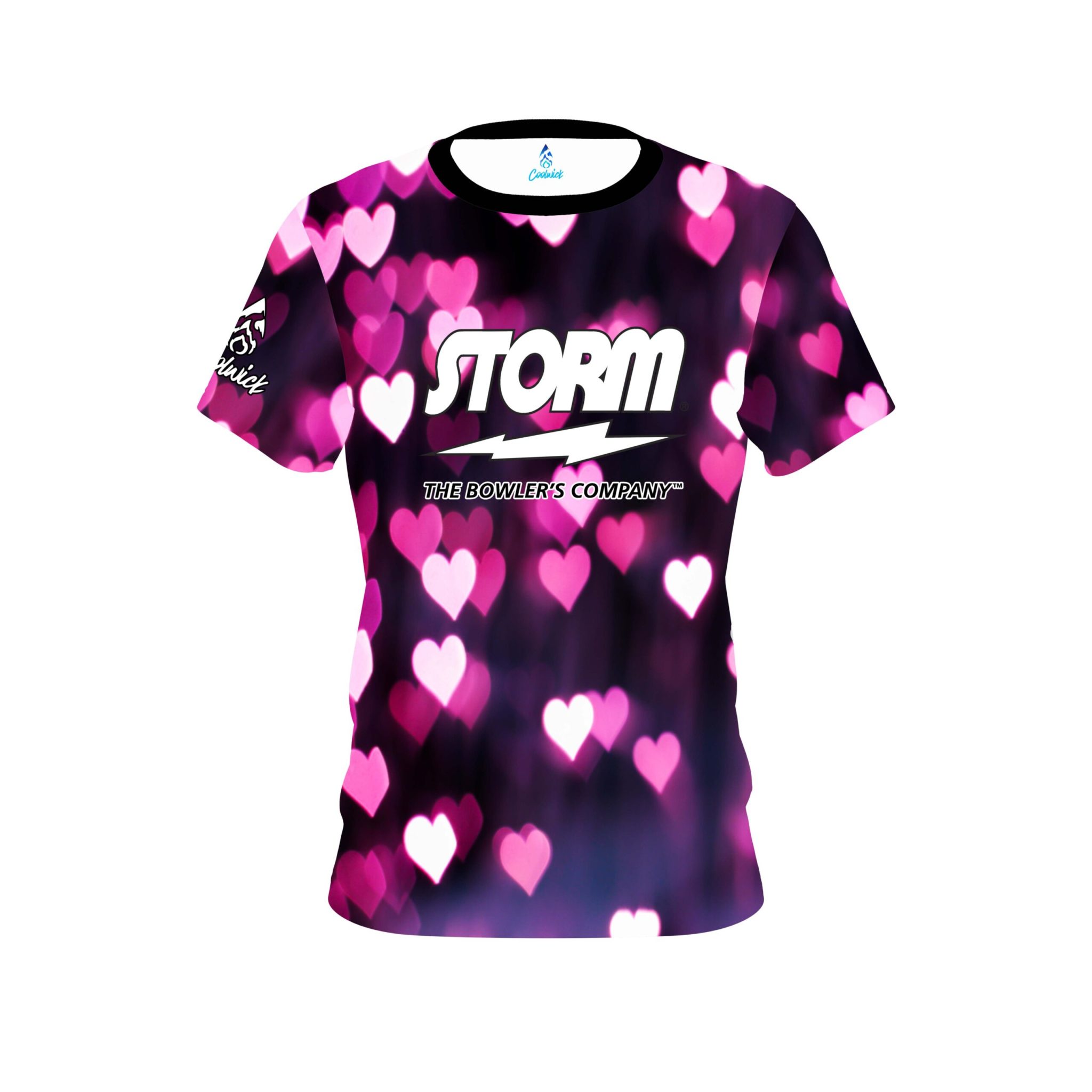 Stay 40% cooler with CoolWick. Our Storm Valentines Hearts Coolwick Bowling Jerseys are made of two different fabrics with the back being our CoolWick technology fabric that helps wick moisture away and helps air flow more easily through the fibers.