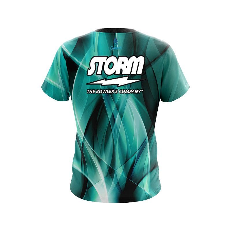 Stay 40% cooler with CoolWick. Our Storm Wavy Aqua Swirl CoolWick Bowling Jerseys are made of two different fabrics with the back being our CoolWick technology fabric that helps wick moisture away and helps air flow more easily through the fibers.