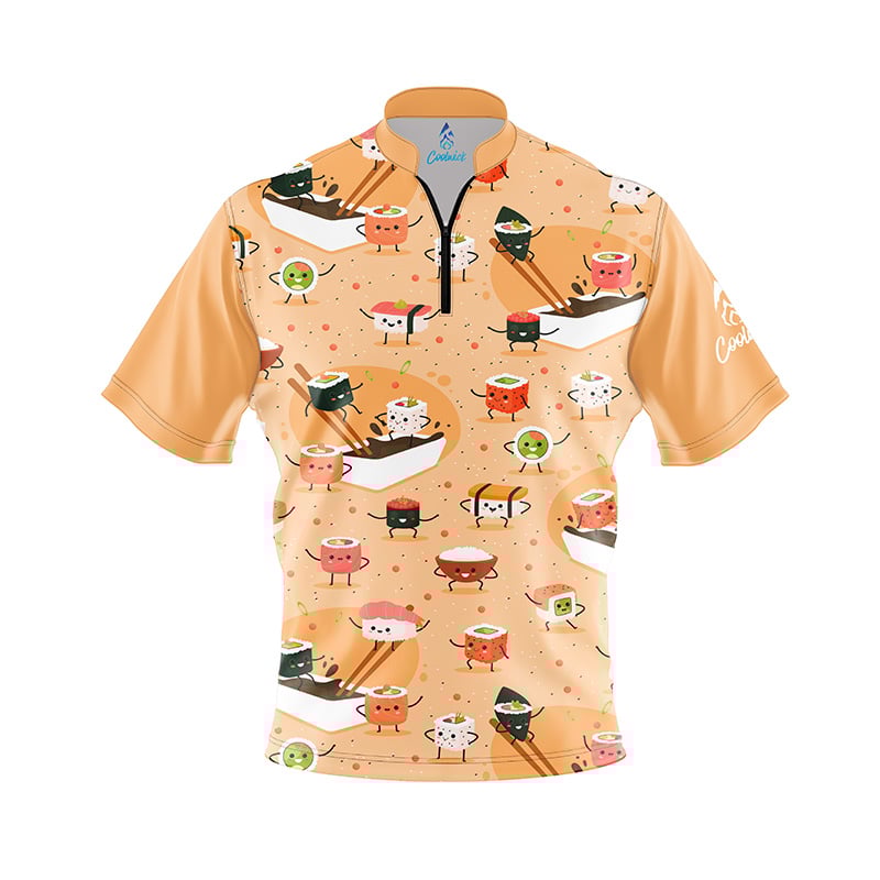 Our Fast Track jerseys come with a sash zip collar at no extra charge! There are no additional logos in order to ensure speedy production of your Sushi Party Fast Track CoolWick Bowling Jersey, which will complete the production process in 7 to 14 Days!