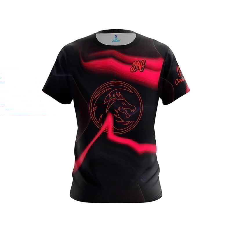 But it’s not just about functionality, this eye-catching design boasts vibrant colors that are sure to turn heads. It perfectly complements the iconic look of SWAG Bowling’s latest release, the Black Dragon bowling ball. Crafted with uncompromising precision right here in the USA, this jersey is a symbol of superior quality and craftsmanship.
