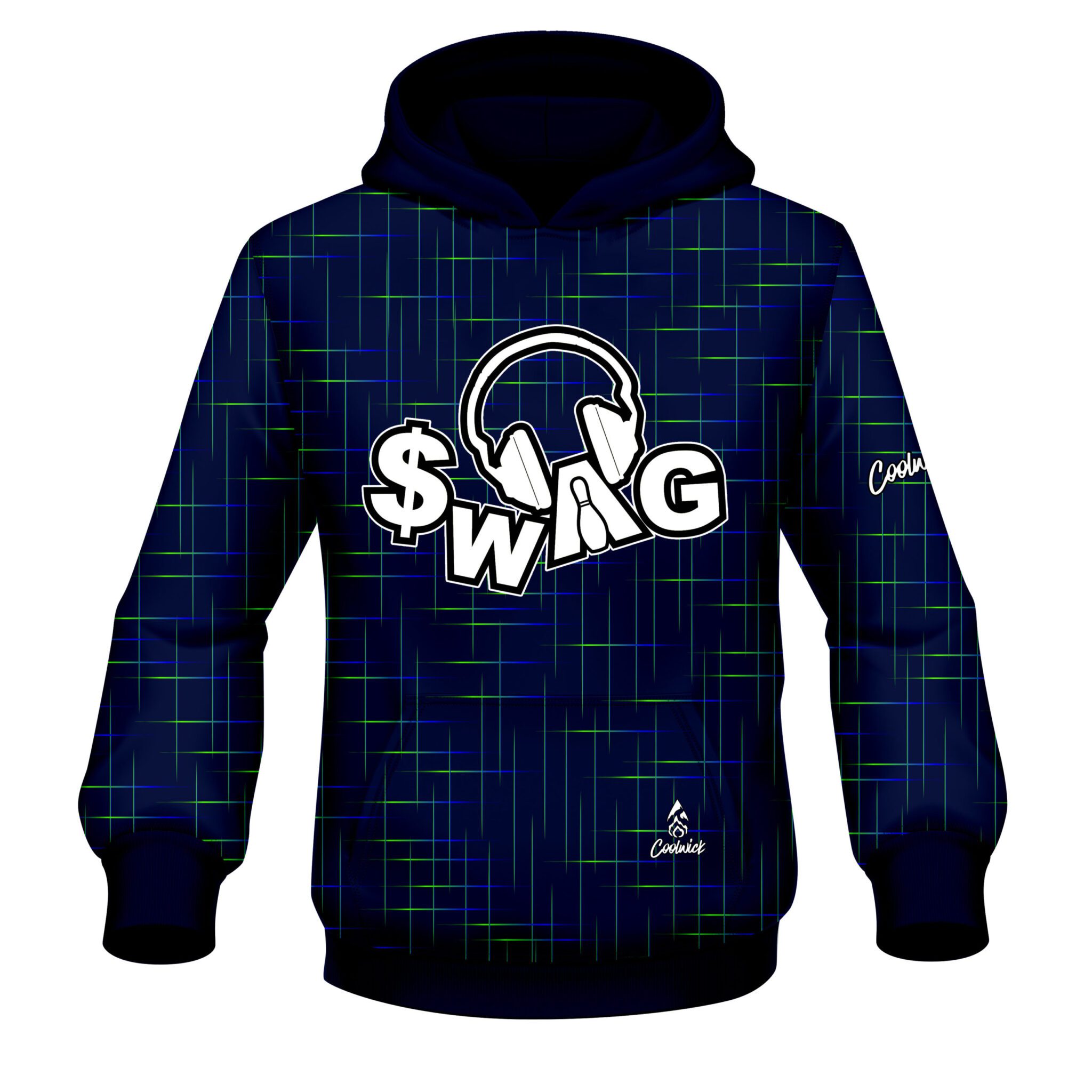 Designed, cut and sewn by hand our SWAG Rising Navy Blue CoolWick Bowling Hoodies are made to keep you warm and comfy with HD graphics and eye-catching style.