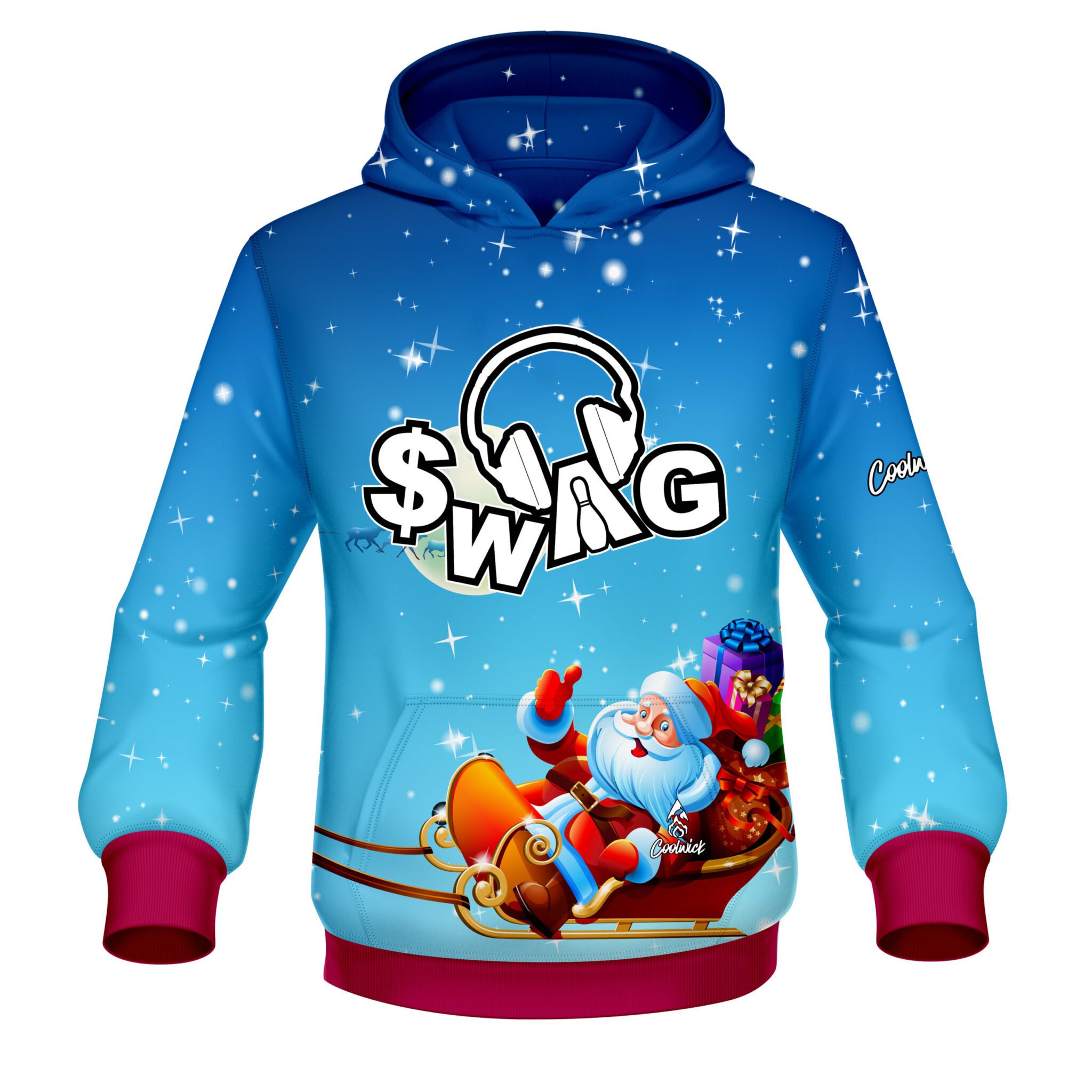 Designed, cut and sewn by hand our SWAG Santa Merry Christmas CoolWick Bowling Hoodies are made to keep you warm and comfy with HD graphics and eye catching style.
