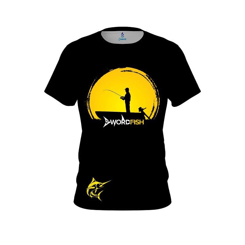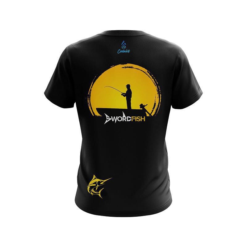 Stay 40% cooler with CoolWick. Our Sword Fish Moon Lake CoolWick Fishing Jerseys are made of two different fabrics with the back being our CoolWick technology fabric that helps wick moisture away and helps air flow more easily through the fibers. They also are UPF 50 and made of 100% Polyester.