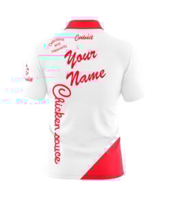 Our Fast Track jerseys come with a sash zip collar at no extra charge! There are no additional logos in order to ensure speedy production of your The CoolWick Sauce Chicken Sauce Fast Track CoolWick Bowling Jersey, which will complete the production process in 7 to 14 Days!