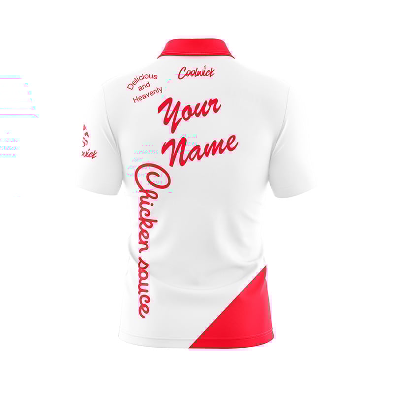 Our Fast Track jerseys come with a sash zip collar at no extra charge! There are no additional logos in order to ensure speedy production of your The CoolWick Sauce Chicken Sauce Fast Track CoolWick Bowling Jersey, which will complete the production process in 7 to 14 Days!