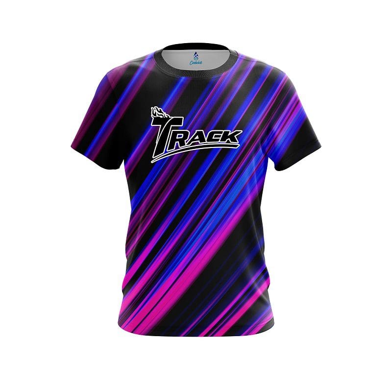 Stay 40% cooler with CoolWick. Our Track Blue And Pink Digital Stripe CoolWick Bowling Jerseys are made of two different fabrics with the back being our CoolWick technology fabric that helps wick moisture away and helps air flow more easily through the fibers.