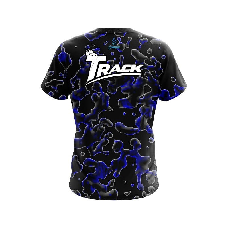 Stay 40% cooler with CoolWick. Our Track Blue Flowing Fluid CoolWick Bowling Jerseys are made of two different fabrics with the back being our CoolWick technology fabric that helps wick moisture away and helps air flow more easily through the fibers.